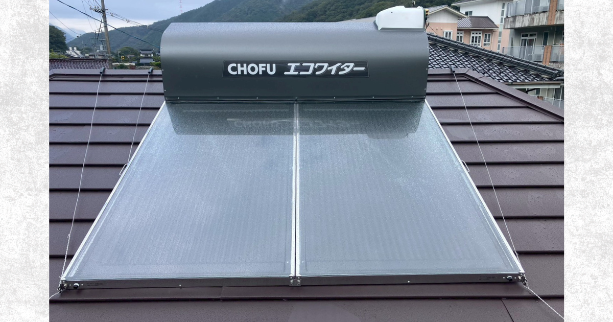 屋根の葺き替え完了にあわせて、長府製作所ソーラー「エコワイター SW1-213L」を新設しました。