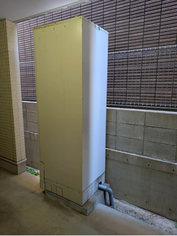広島市中区広瀬北町 I様邸にて、電気温水器の本体交換を行いました。